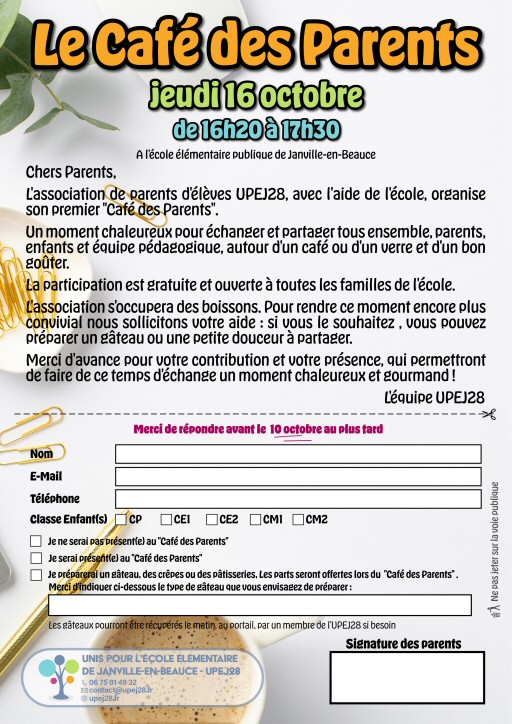 L'association de parents d'élèves UPEJ28, avec l'aide de l'école, organise son premier "Café des Parents".